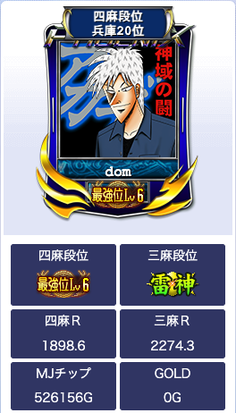 MJでは主に段位戦かギャンブル卓(三麻)しかやっていませんが、どちらもブログ開設に比べるとぼちぼち段位が上がってきていたようです。